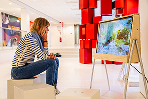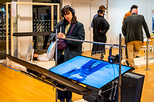 Exhibition visitor looking at Laura Flethe’s embodied and experience-based maps.