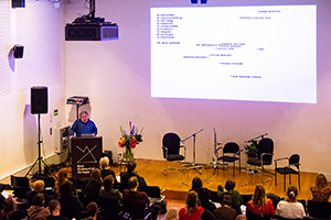 Audience deeply immersed into the Mondriaan report. – Photo by Justina Nekrašaitė