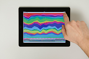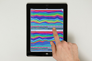 Rotating the iPad allows comparing two selected datasets.