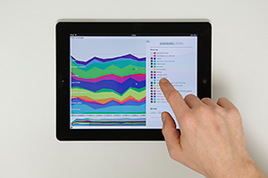 For an enhanced usability Attention Radar also exploits iPad-specific interactions like rotating or gestures. Swiping for example allows to adjust the data sets, while rotating the tablet enables the comparative view mode with two data sets on top of each other.