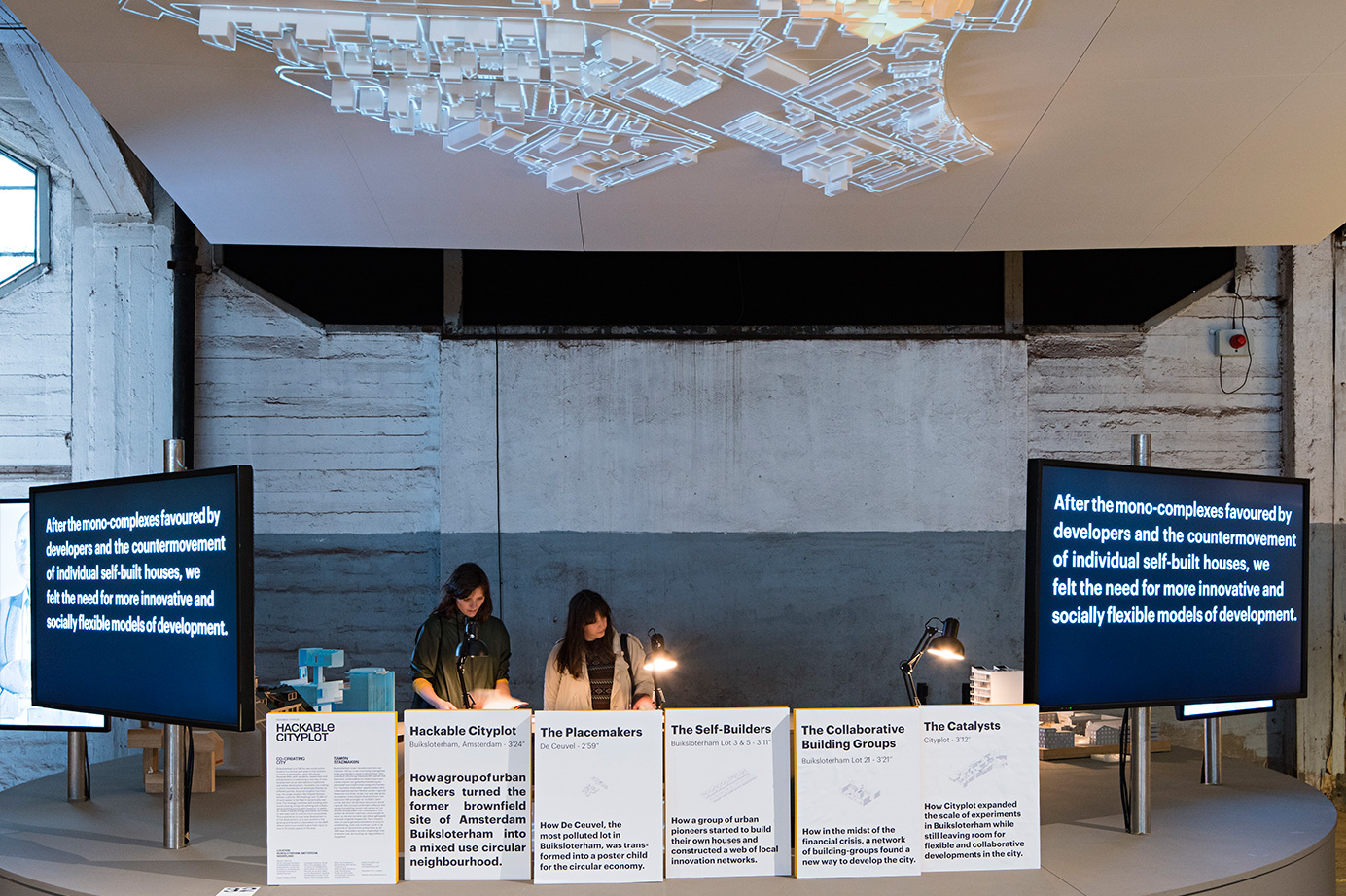 The installation Hackable Cityplot zooms in on a number of concrete proposals resulting from the clash between the chaotic world of the bottom-up and traditional top-down urban planning, where cooperative co-design processes run in parallel with traditional urban development.