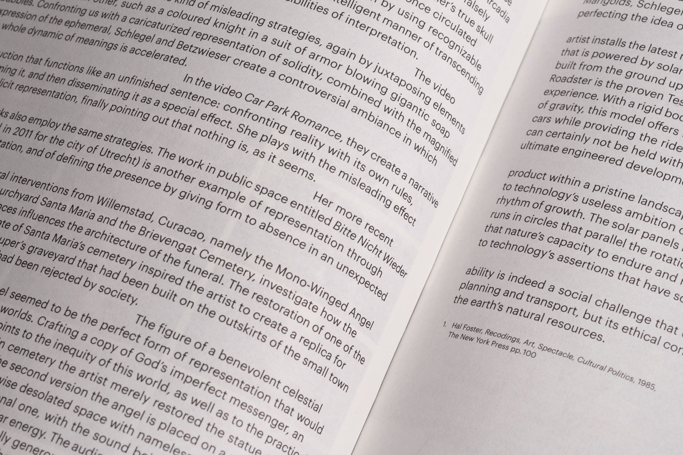 The publication also contains descriptions and an extensive review of Schlegell’s most recent work, as an illustration of her art practice and as a showcase in which these gestures take root. The sum of this book discusses the posture and potential of meaningful experiences and the process of signification through art in the (public) context.