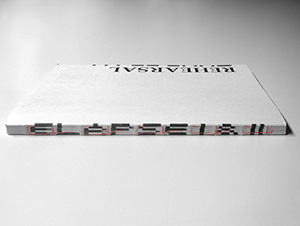 Elapse I & II, offered up in book form, allows the reader / spectator the occasion to consider the two events simultaneously. The selected images of the overwhelming three hour performance documentation target to unveil critical similarities and differences of the event and reflect on perception and attentiveness to the present moment. Elapse I & II clearly draws to the surface the startling process of memory in action.