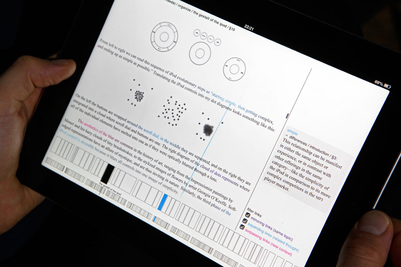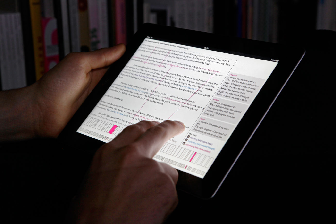 Genders of Hyperlinks presents a new, gesture-based user interface for digital reading. – All photos by Roel Backaert