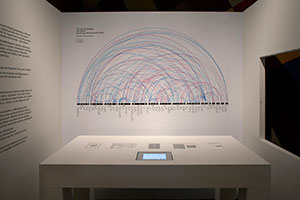 An arc diagram of all the semantic connections gives insight into the internal structure of the book. – Photo by Eline Baggen