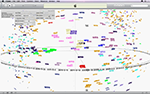 When a selected item of the globe is highlighted, the related communication events are grouped around it.