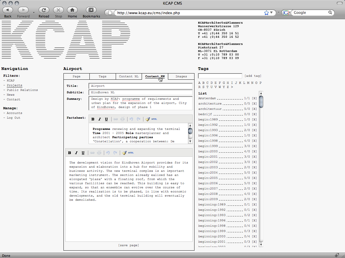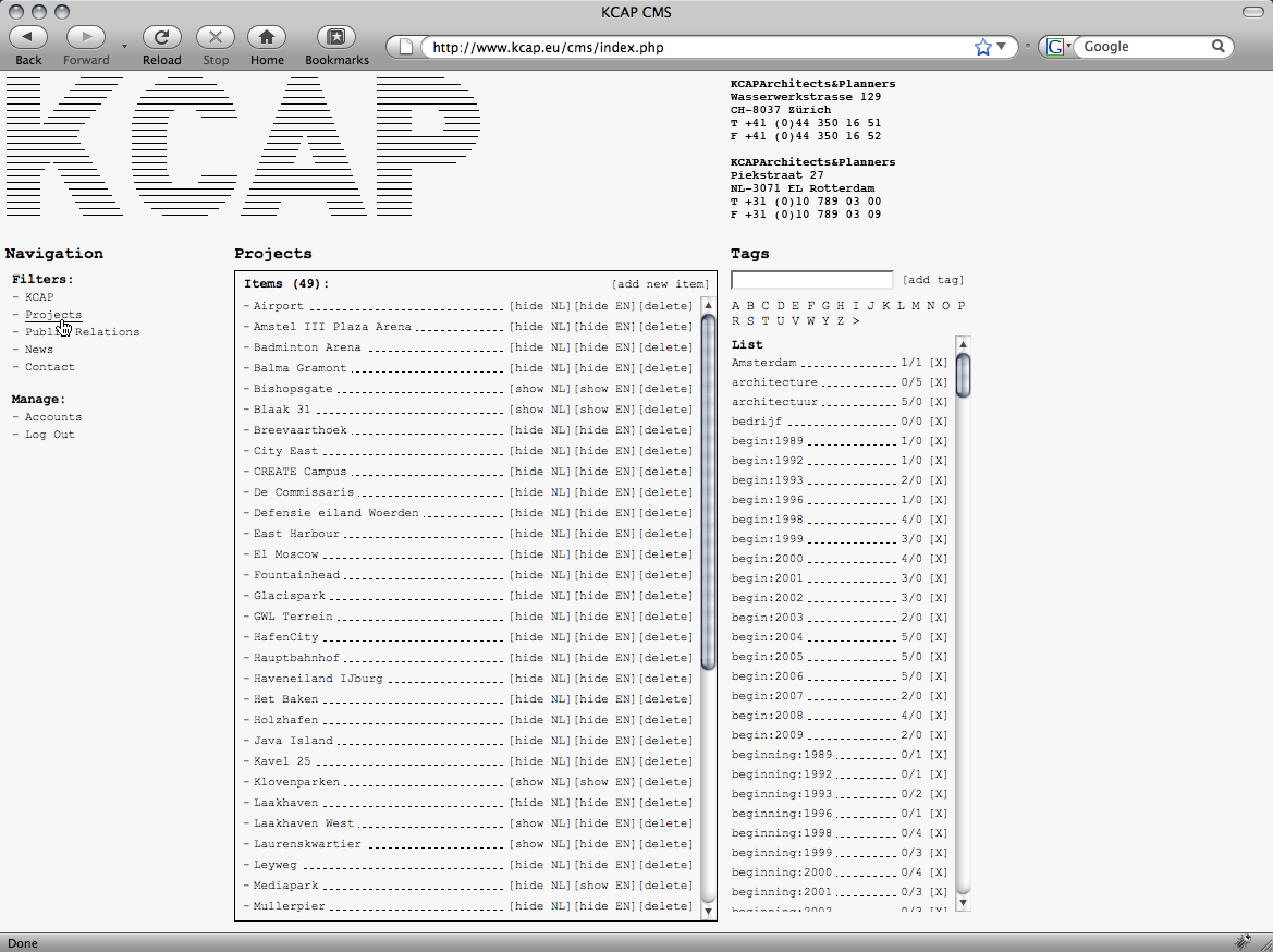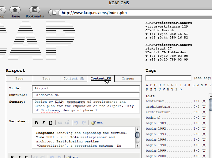 non-hierarchical keyword catalogue for the Dutch office KCAP Architects&Planners