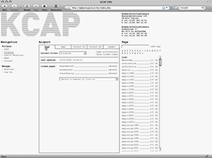 www.kcap.eu is a non-hierarchically structured keyword catalogue that allows for contextual and thematical browsing by clustering related and descriptive keywords to a tag cloud. This cloud works like a central registry where metadata definitions are stored and maintained to enable an intuitive site navigation.
