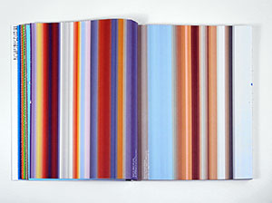 Spread with color diagrams based on Beat Streuli’s Selected images Bangkok 2002 62/15 and Peter Struycken’s Arcade lighting installation at the NAi in Rotterdam.