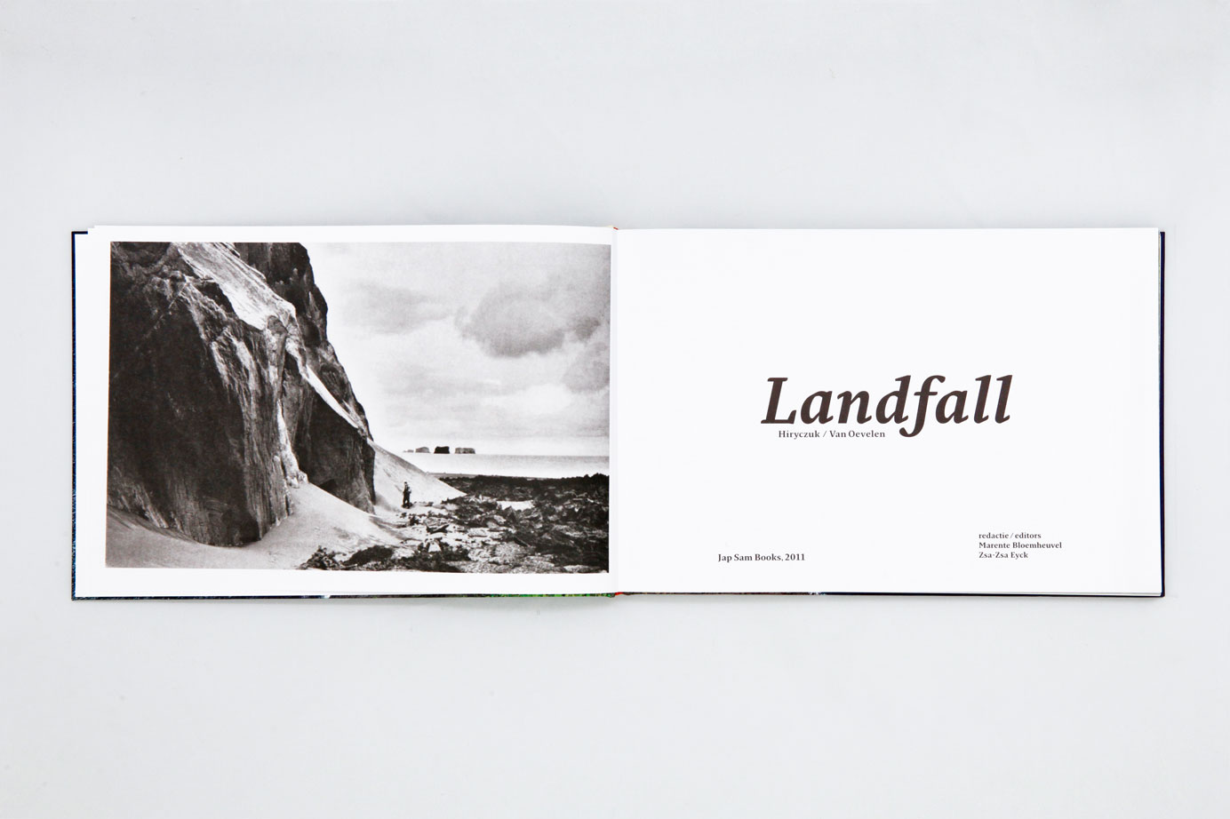Hiryczuk / Van Oevelen – Landfall is a publication based on the temporary art project Landfall in the public space of Amsterdam Zuidas by artist duo Elodie Hiryczuk and Sjoerd van Oevelen. Landfall consists of 10 large panoramic photographs of the youngest island in the world, Surtsey, which came into being by a submarine volcanic eruption in 1963 to the south of Iceland.