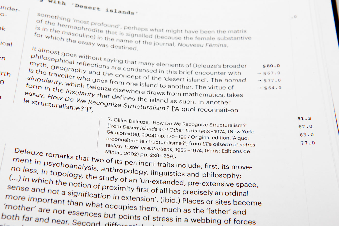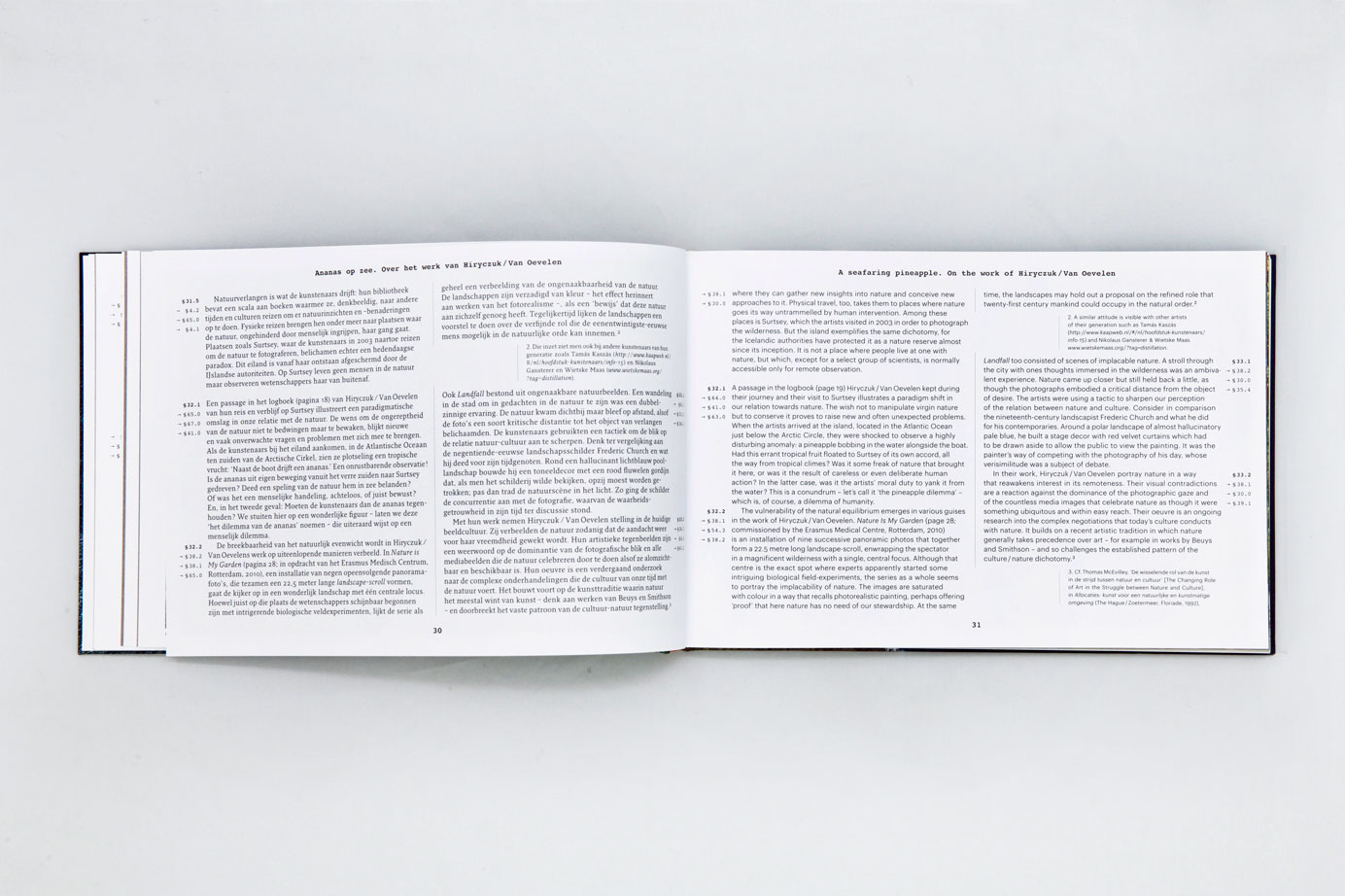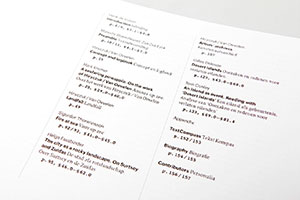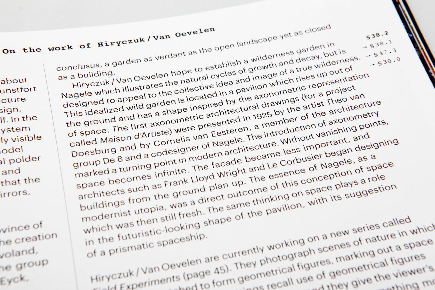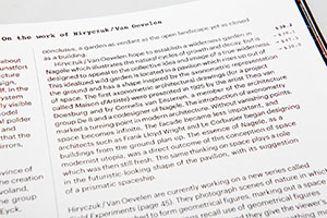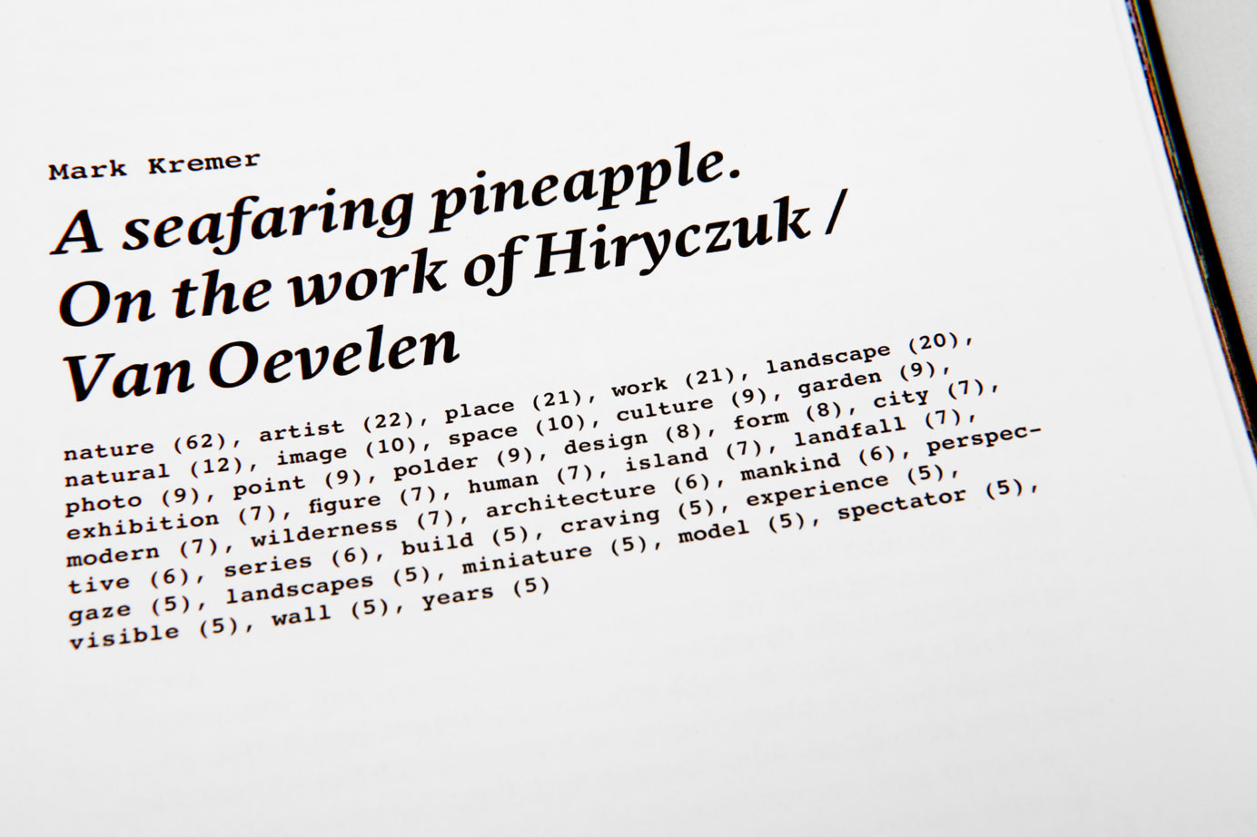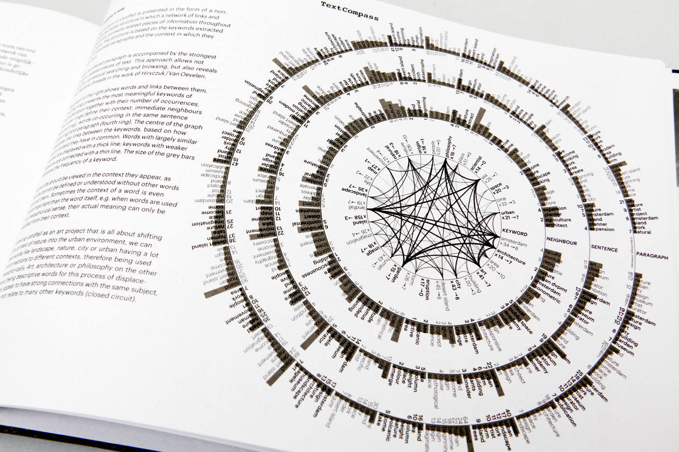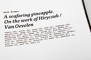 The book presents its content in the form of a non-sequential hyper-structure in which a network of links and references connects related pieces of information throughout the book. This structure is based on the keywords extracted from individual paragraphs and the context in which they are used. The approach allows not only for contextual searching and browsing, but also for revealing the thematic threads in the work of Hiryczuk / Van Oevelen.