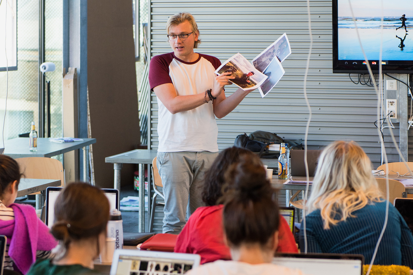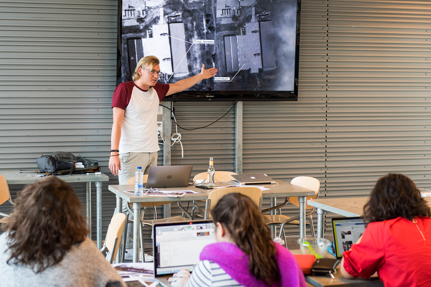 Syllabus kickoff with geotag battle workshop by Christiaan Triebert from Bellingcat. – Photos by Boel Backaert