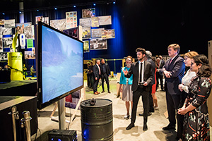 Student Marc van den Berg presenting with his peers the project Saudi Arabia 2030 to King Willem-Alexander. – Photo by Marieke Wijntjes