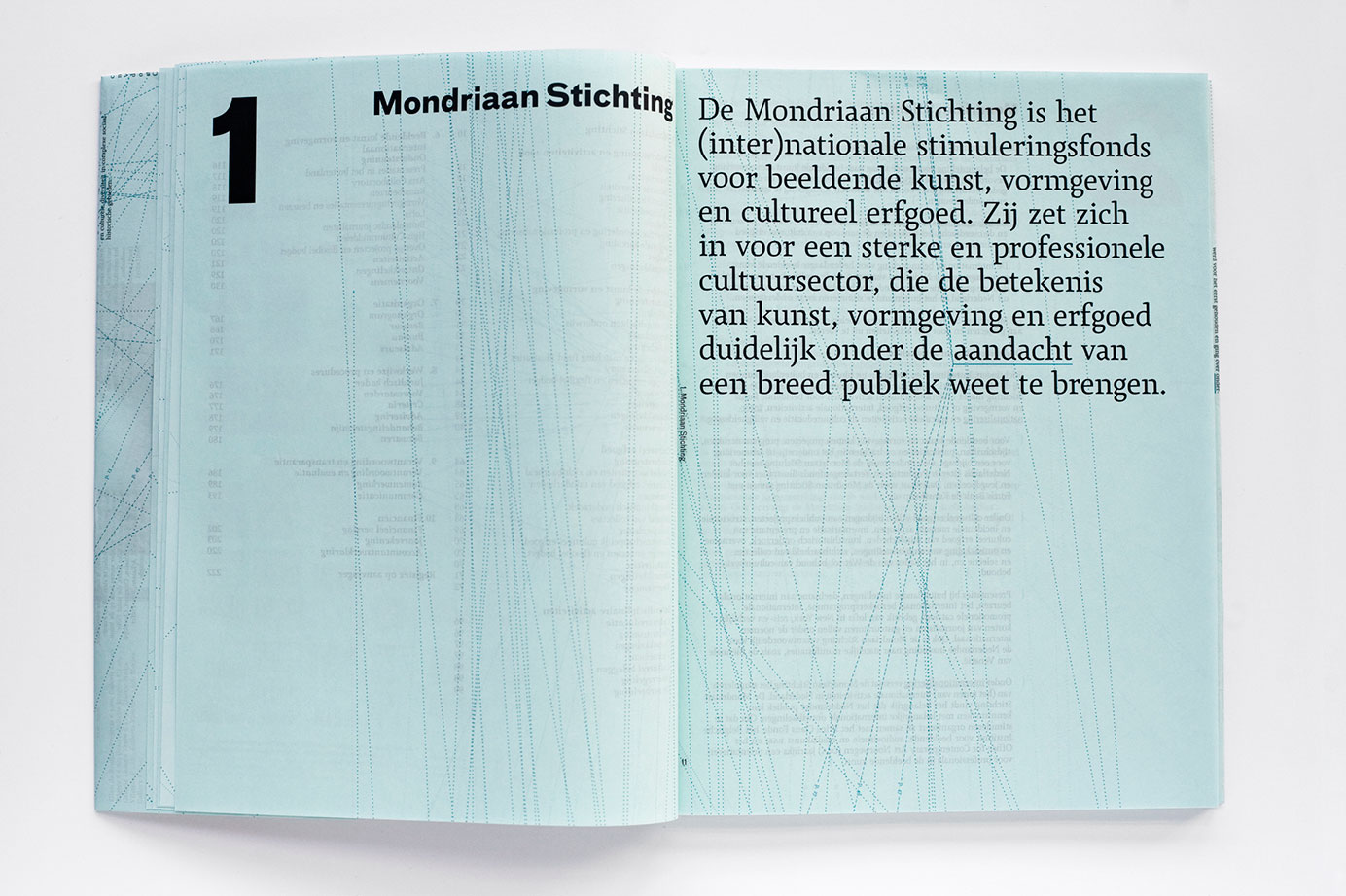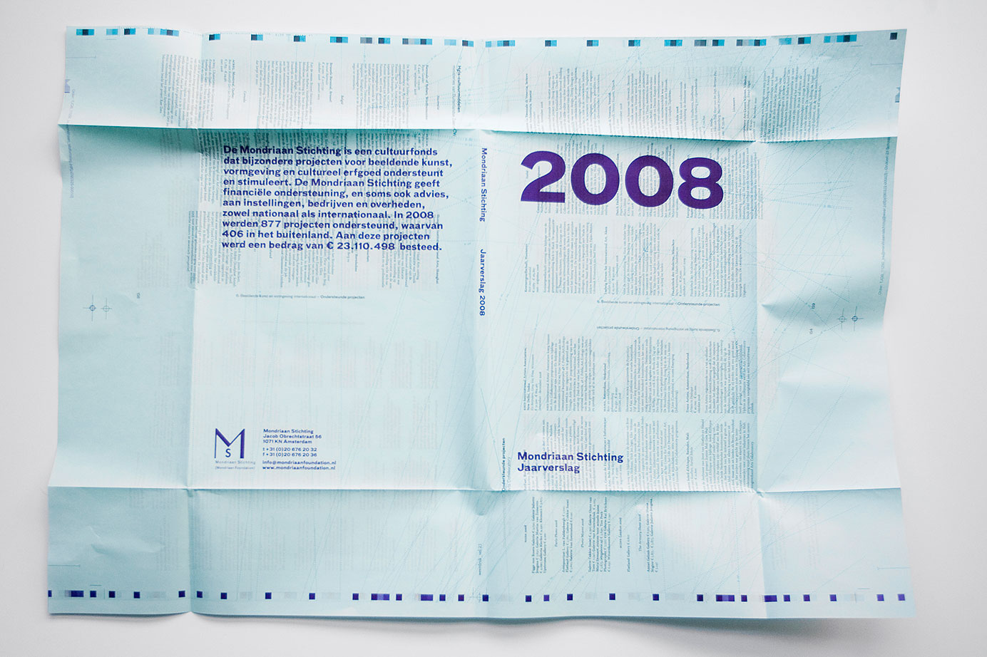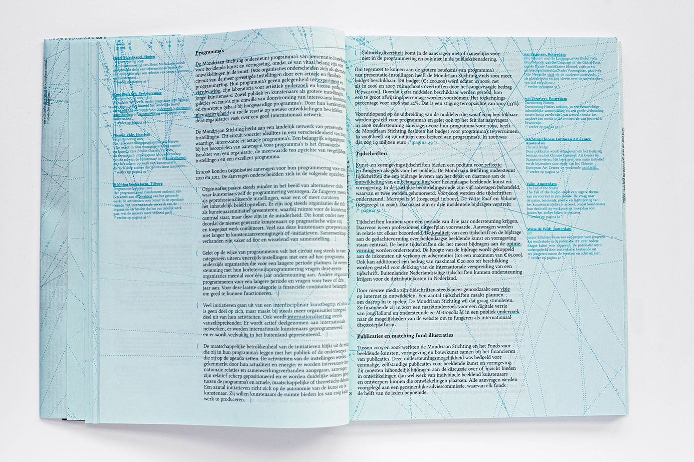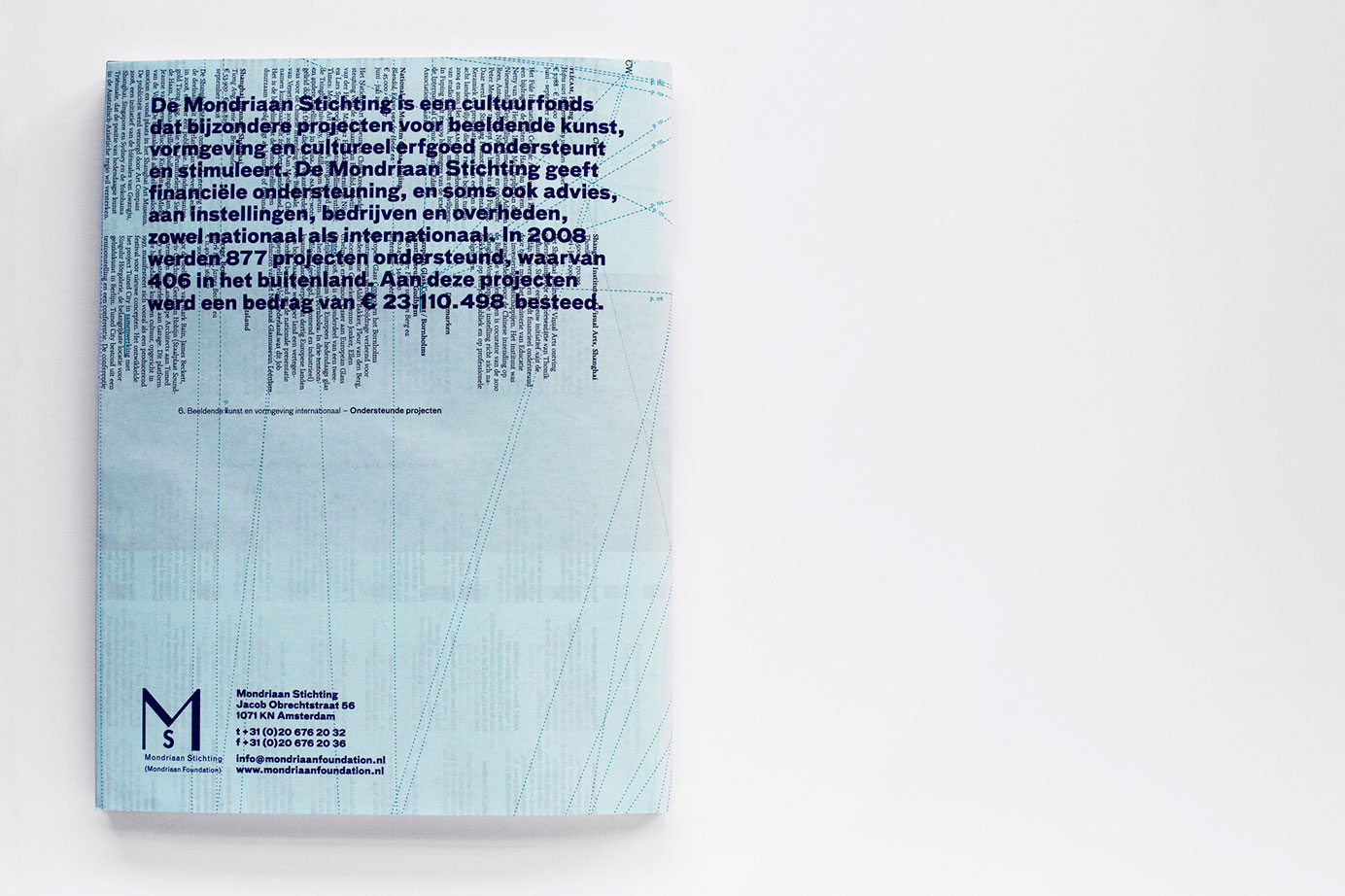 The Mondriaan Foundation supports exceptional projects of visual art, design and cultural heritage of the Netherlands. As the organization manages an annual budget of approximately 23 million euros, the annual report is published not only to review the organization’s current activities but also to comply with public accountability and transparency requirements.