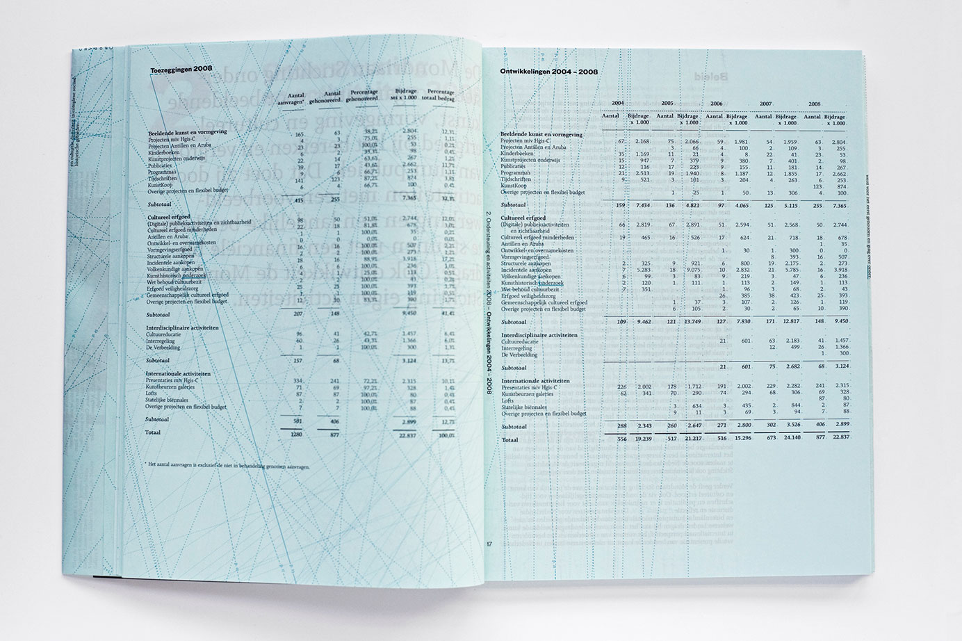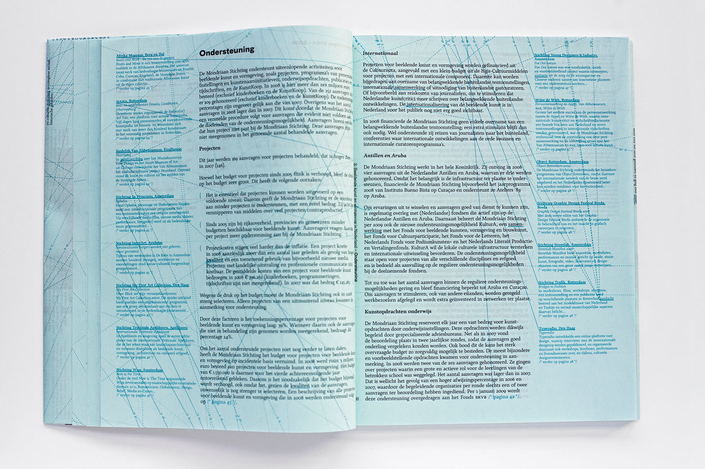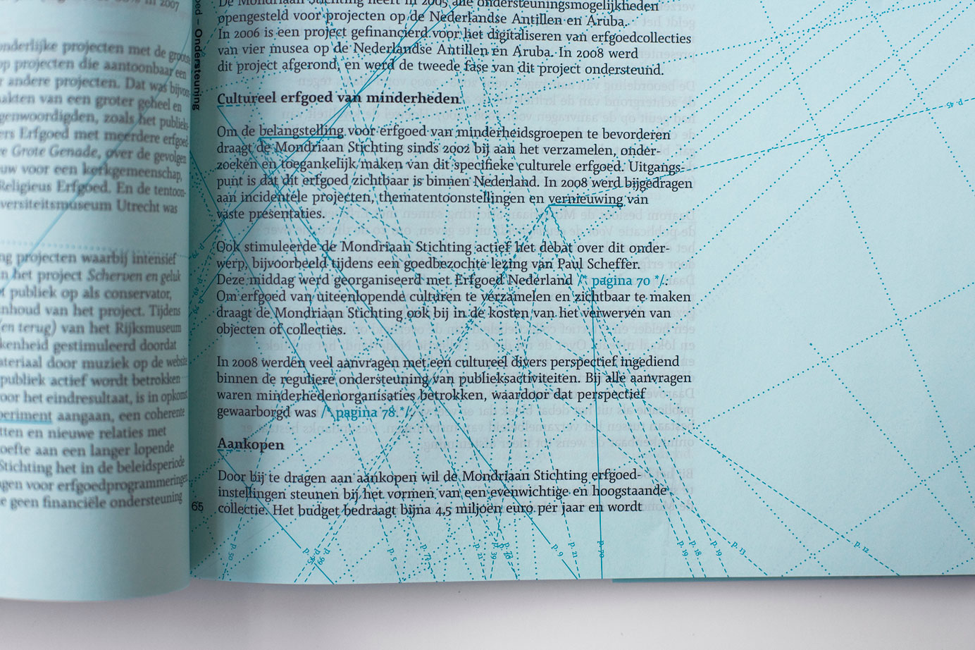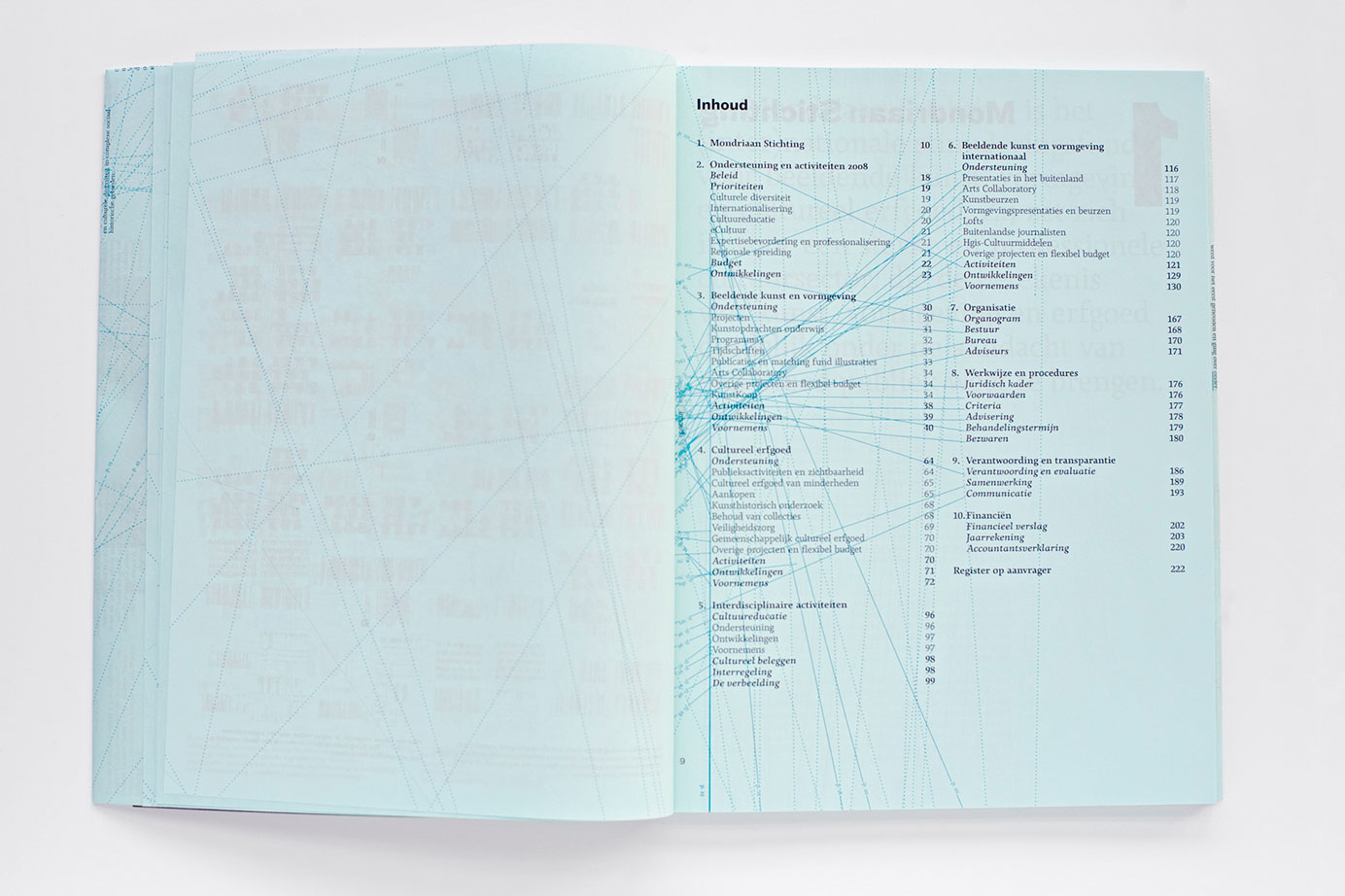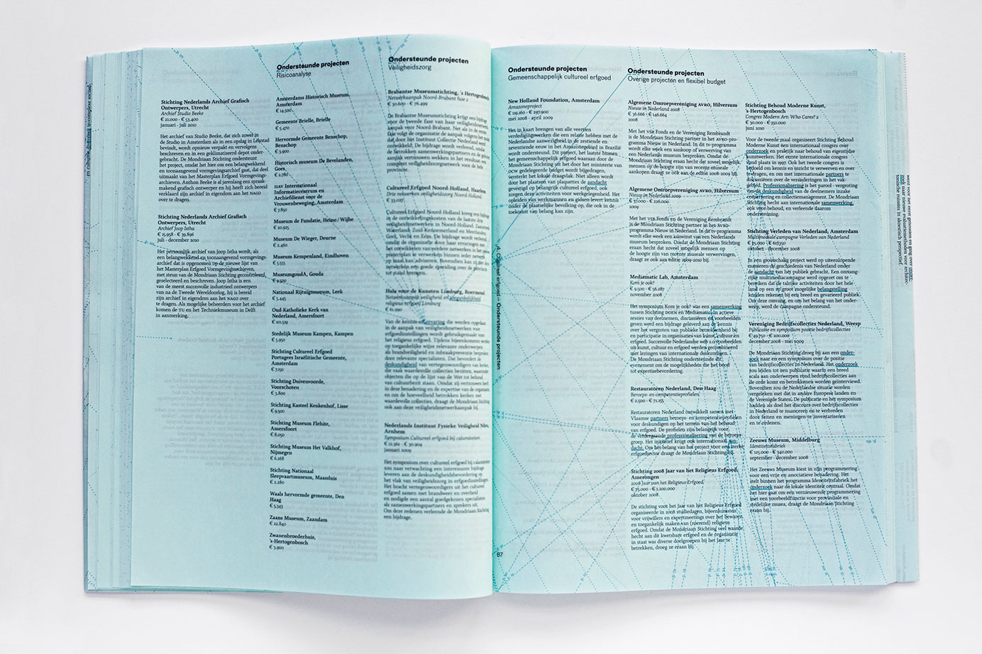 The Mondriaan Foundation supports exceptional projects of visual art, design and cultural heritage of the Netherlands. As the organization manages an annual budget of approximately 23 million euros, the annual report is published not only to review the organization’s current activities but also to comply with public accountability and transparency requirements.