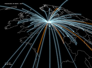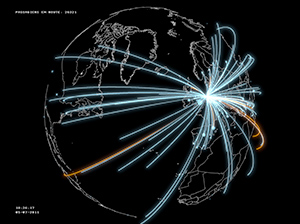Contrary to the previous visualizations, this animation tells a story about migration streams and passengers rather than only visualizing the patterns of air traffic. Humans are considered to be the ultimate point of reference. Hence, adding the human factor helps relating to the data and build empathy and understanding.