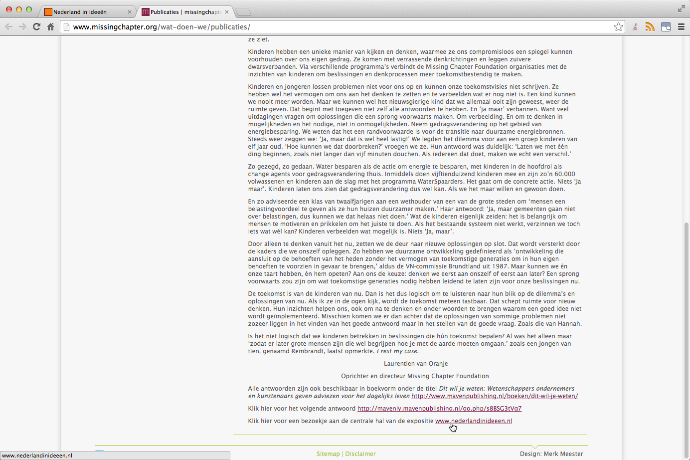 Nederland in ideeën is an experiment in which a physical publication is accompanied by distributing the content all over the net.
