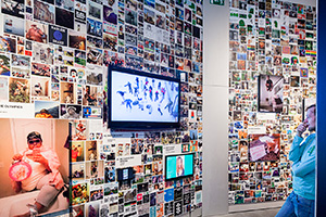 Seen from a greater distance, the Planet Hype installation overwhelms the audience by generating an oversized Facebook wall that captures ephemeral by nature hype moments.