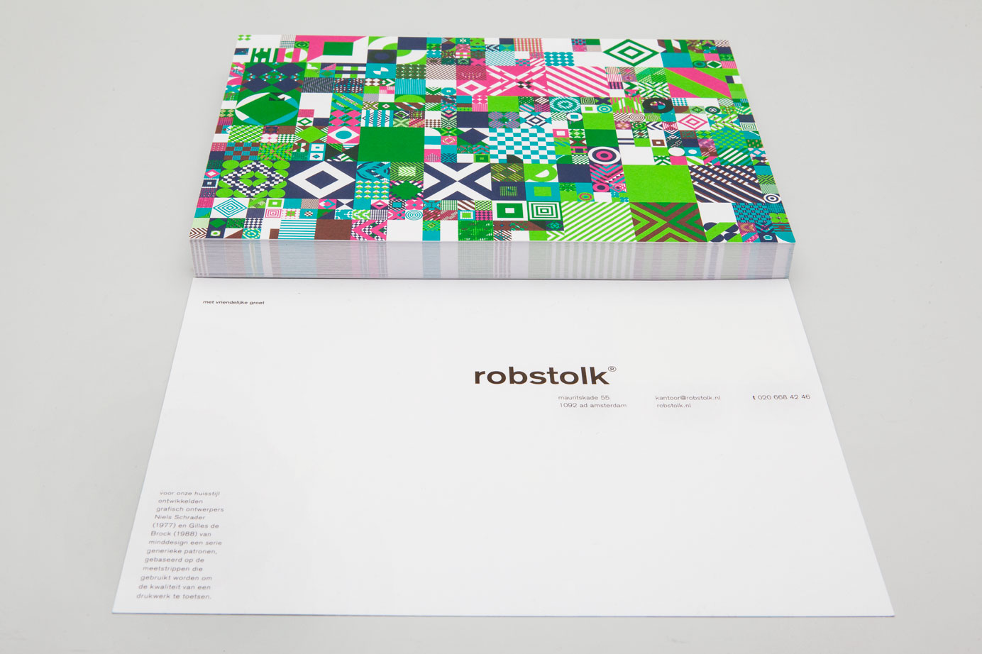This stationery is the 2014 sequel to the visual identity for first class printing company Robstolk. Starting point was to include into the design elements which would showcase the quality standards of the printer. Hence, the implementation of color control bars and the challenging overprint technique.