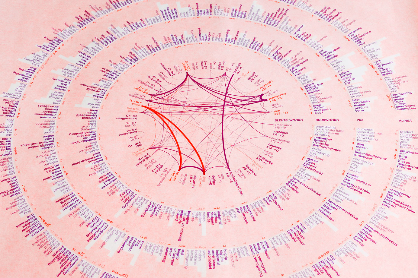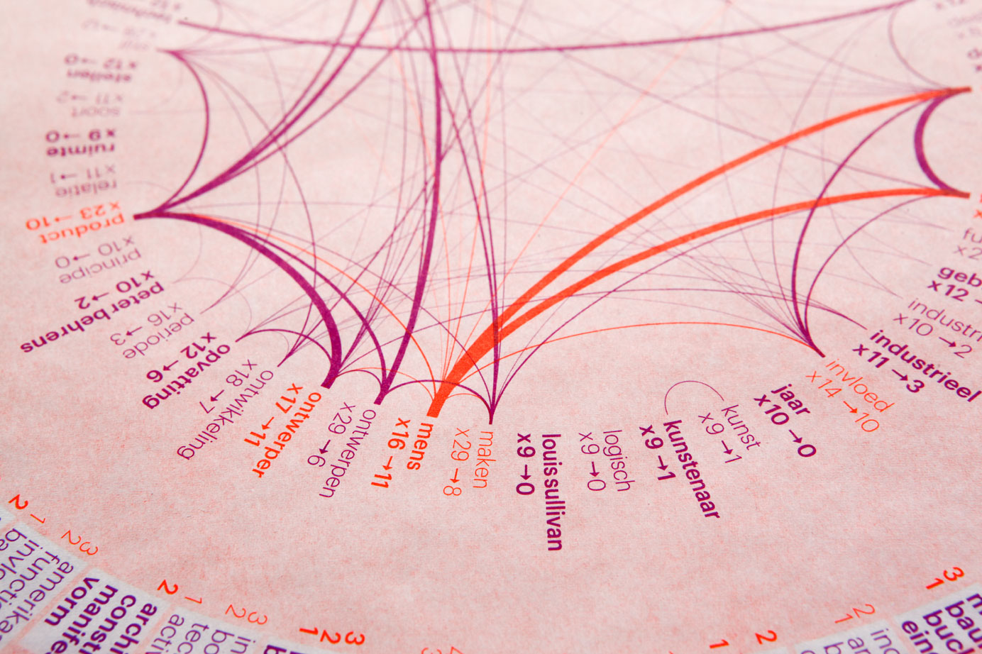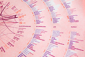 To capture Wim Crouwel’s visionary approach to graphic design and to understand what makes his design so unique, two inaugural speeches from his time as a professor at Delft University of Technology and Erasmus University in Rotterdam were fed into the software to produce the presented network visualization.