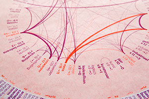 TextCompass is a software designed for text analysis and network visualization. From a given text, it renders a hypergraph that visualizes connections between related words based on their semantic context. The concept of TextCompass was presented for the first time to the public during the Items Live 12 lectures at Stedelijk Museum Amsterdam, on the occasion of Wim Crouwel’s exhibition A Graphic Odyssey.