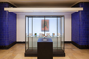 Projection onto the back of a 2 m glass cabinet. – All photos by Roel Backaert