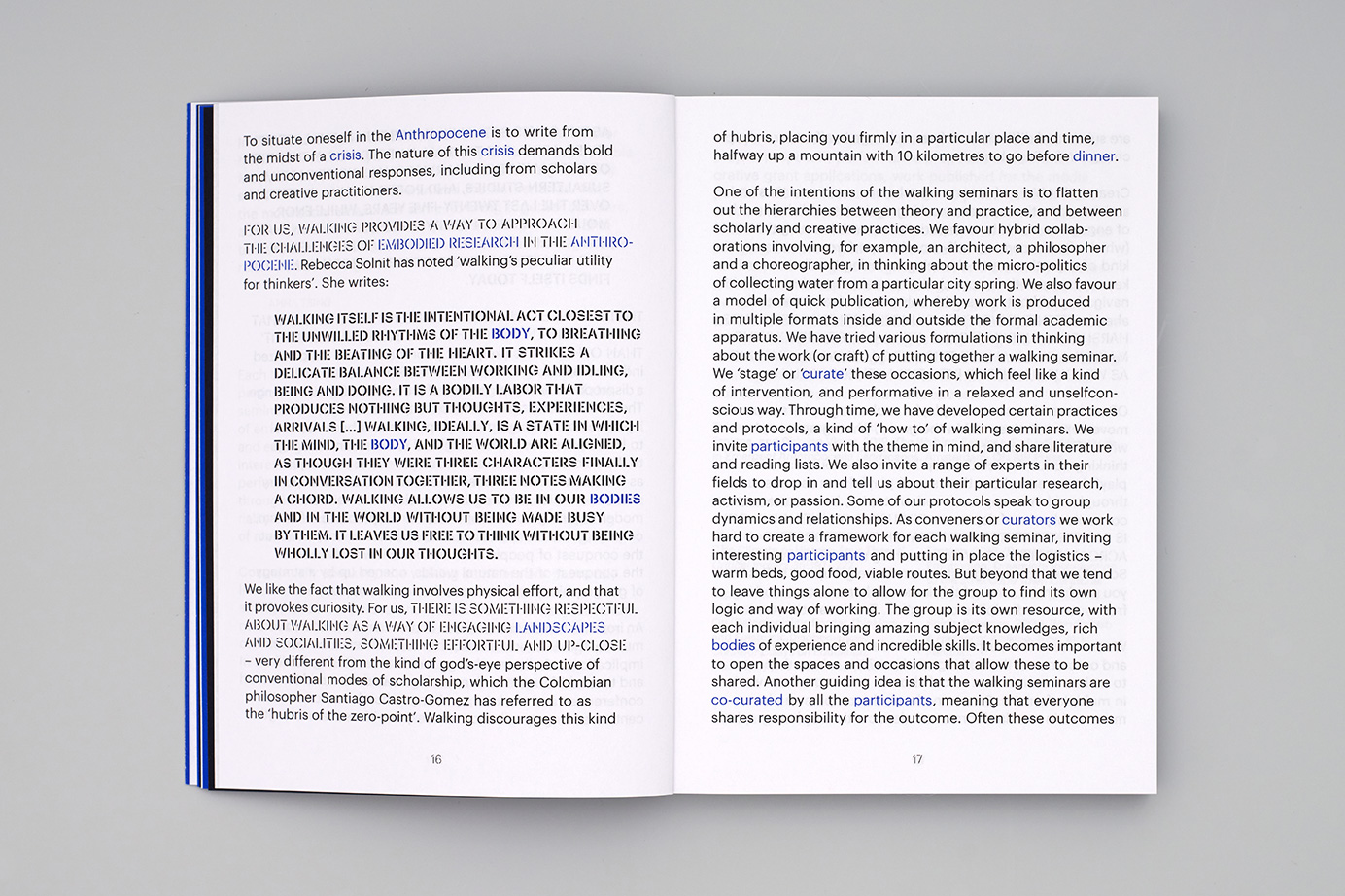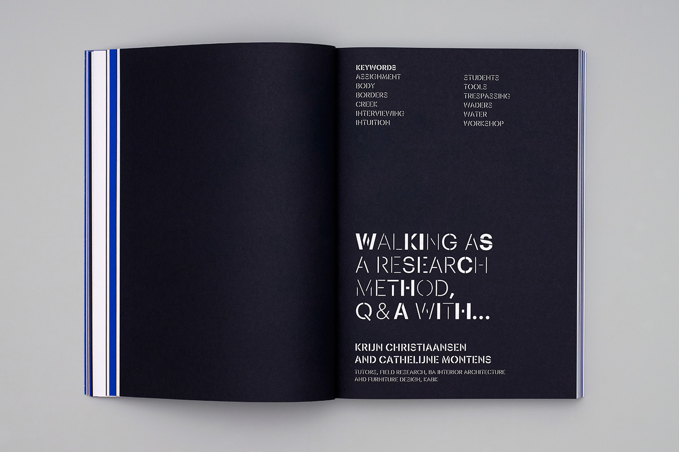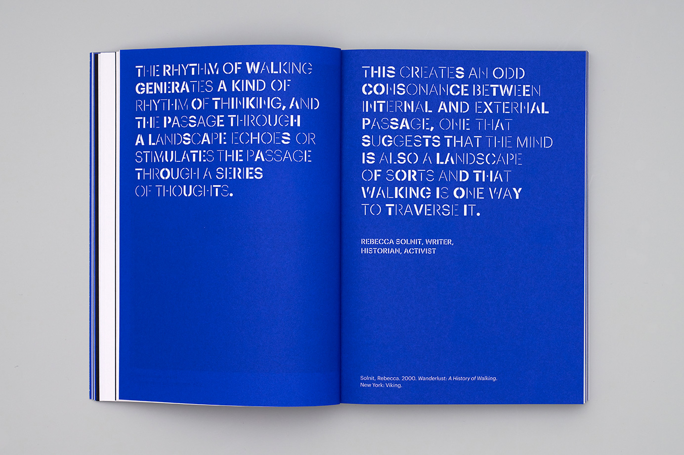 Walking: A Research Method in Art and Design is the first book in a series published by the Lectorate Design at the Royal Academy of Art (KABK) in The Hague, aiming to identify and share a range of research methods that use the tools, approaches, and capacities of art and design in order to create new knowledge in the context of walking. The publication was edited by Alice Twemlow in collaboration with Alice Ladenburg, and contains Q&A’s, essays, and contributions by students, tutors, and researchers active at KABK.