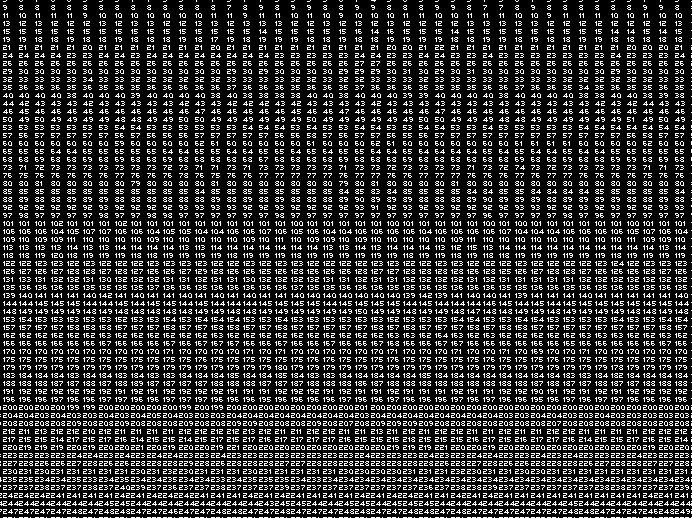 Based on a color spectrum of 256 levels of gray, every pixel of an image has a brightness value ranging from 0 to 255, with white being defined as 255 and black equaling 0. Although White Blackout is in fact only displayed in black and white, the missing grey shades re-emerge as the three-digits number 255 appears actually brighter on the monitor than the one-digit number 0.